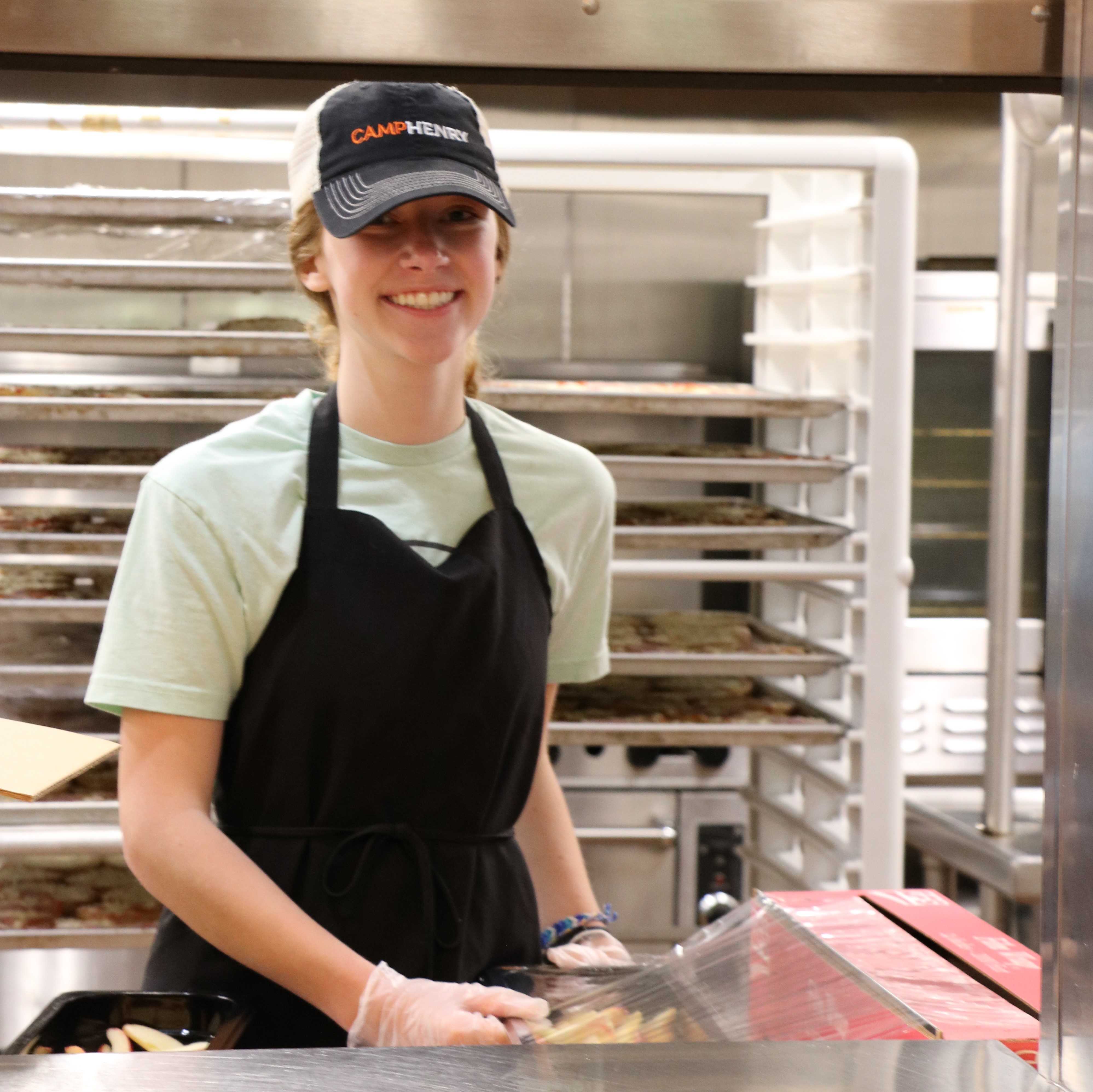 Welcome to the Dining Hall at Camp Henry! This is the perfect spot for your group to enjoy meals and spend time together. Our friendly Food Service team is here to help with questions about our menus, food allergies or dietary restrictions. We're happy to assist!